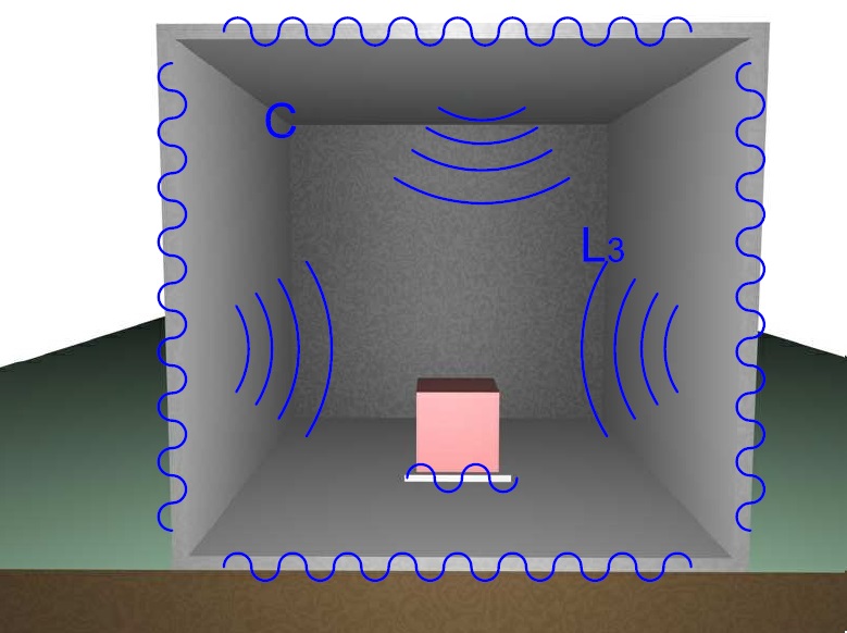 Schéma sekundárně vyzářeného strukturálního hluku v hale